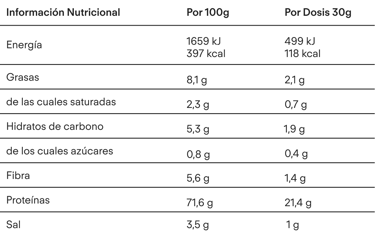 Elaborado con ingredientes naturales y de alta calidad, con un perfil completo de aminoácidos.